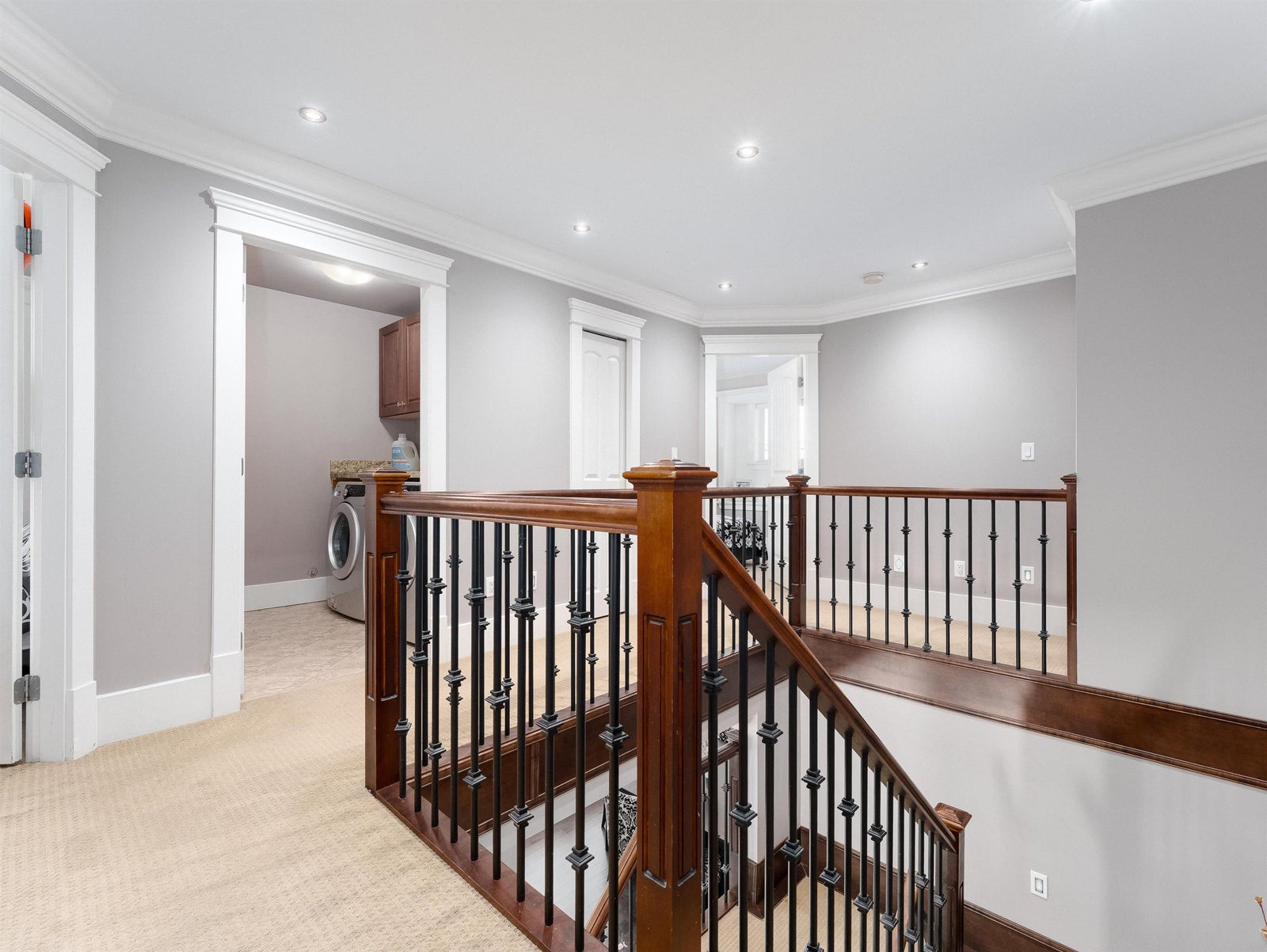 Exquisite custom built in Burnaby's prestigious Crest neighborhood! Thoughtfully designed with uncompromising quality, this 3,982 sq ft residence sits proudly on a rare 8,460 sq ft lot (60x141 ). With 6 spacious bedrooms, 5 spa-inspired bathrooms, and a main floor powder room, this home combines elegance with everyday functionality. Crafted to the highest standards, the home showcases refined finishes, generous living areas, and an ideal layout for both entertaining and family living. Located steps from transit and within walking distance to Armstrong Elementary and Cariboo Hill Secondary, this property offers unmatched convenience without sacrificing privacy or sophistication. Community centres, shopping, and parks are just minutes away.