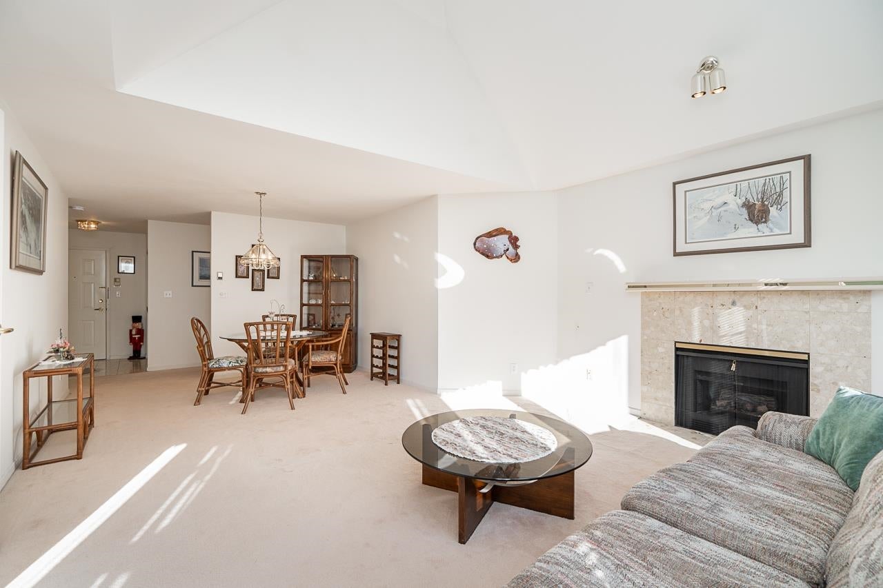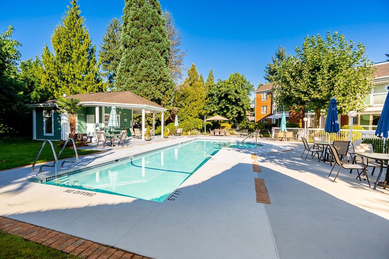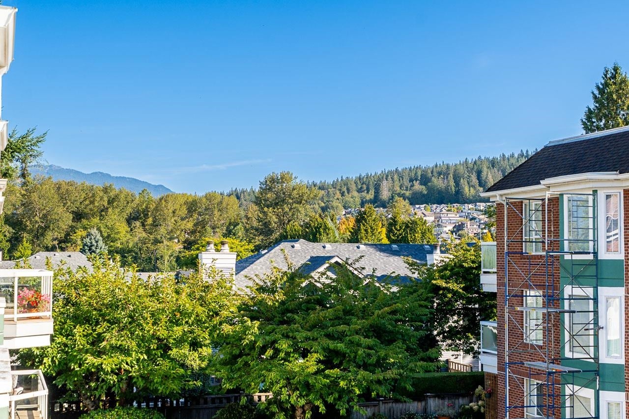 Welcome to Augusta Springs! This bright and spacious top-floor home offers 2 bedrooms and 2 bathrooms with an impressive open-concept living and dining area highlighted by soaring vaulted ceilings. The thoughtful layout ensures privacy with bedrooms on opposite sides of the main living space. Residents enjoy resort-style amenities including a beautifully landscaped garden setting and a refreshing outdoor pool with cabana. Strata fees include heat and hot water. This unit includes 2 secure parking stalls, a storage locker, and access to a bike room. Ideally located near Montecito Elementary, Burnaby North Secondary, SFU, Burnaby Mountain Golf Course, trails, shopping, and SkyTrain with easy access to Lougheed Hwy. A rare opportunity in one of Burnaby North's most sought-after communities.