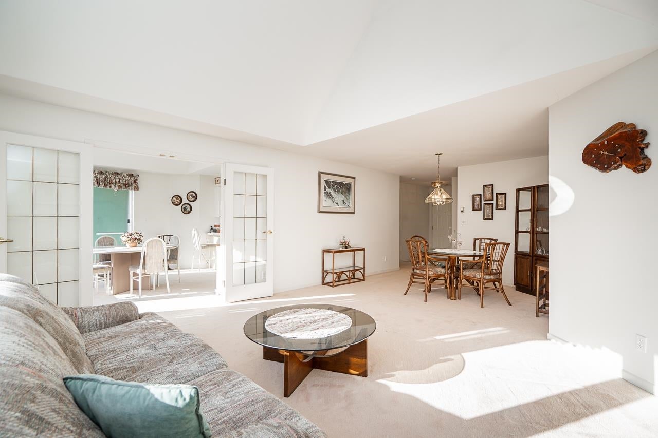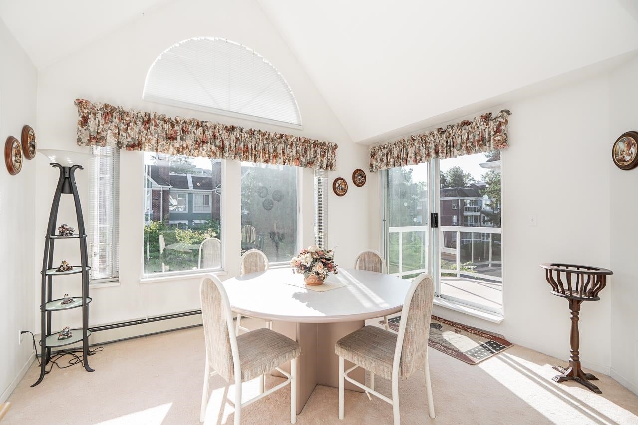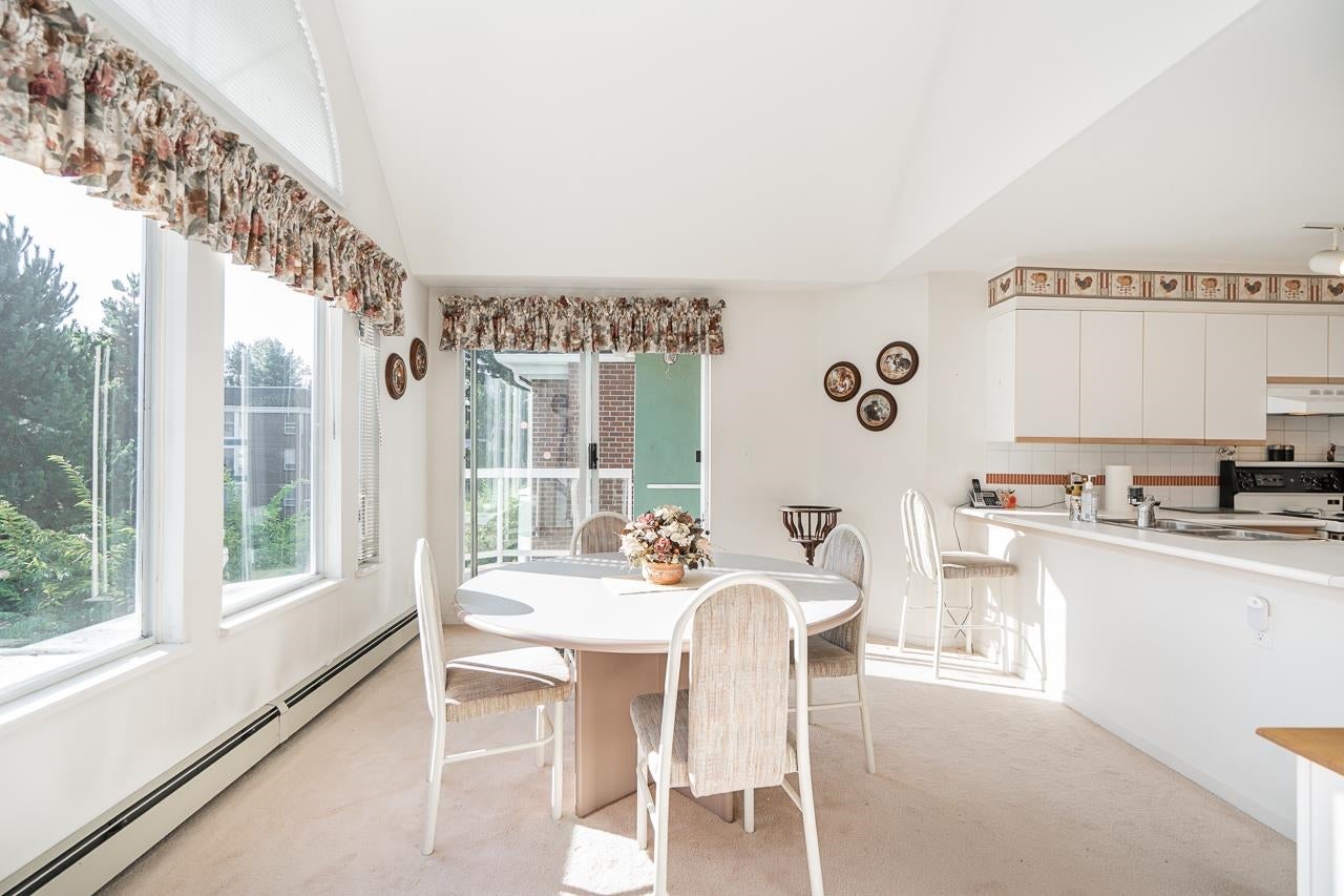 Welcome to Augusta Springs! This bright and spacious top-floor home offers 2 bedrooms and 2 bathrooms with an impressive open-concept living and dining area highlighted by soaring vaulted ceilings. The thoughtful layout ensures privacy with bedrooms on opposite sides of the main living space. Residents enjoy resort-style amenities including a beautifully landscaped garden setting and a refreshing outdoor pool with cabana. Strata fees include heat and hot water. This unit includes 2 secure parking stalls, a storage locker, and access to a bike room. Ideally located near Montecito Elementary, Burnaby North Secondary, SFU, Burnaby Mountain Golf Course, trails, shopping, and SkyTrain with easy access to Lougheed Hwy. A rare opportunity in one of Burnaby North's most sought-after communities.